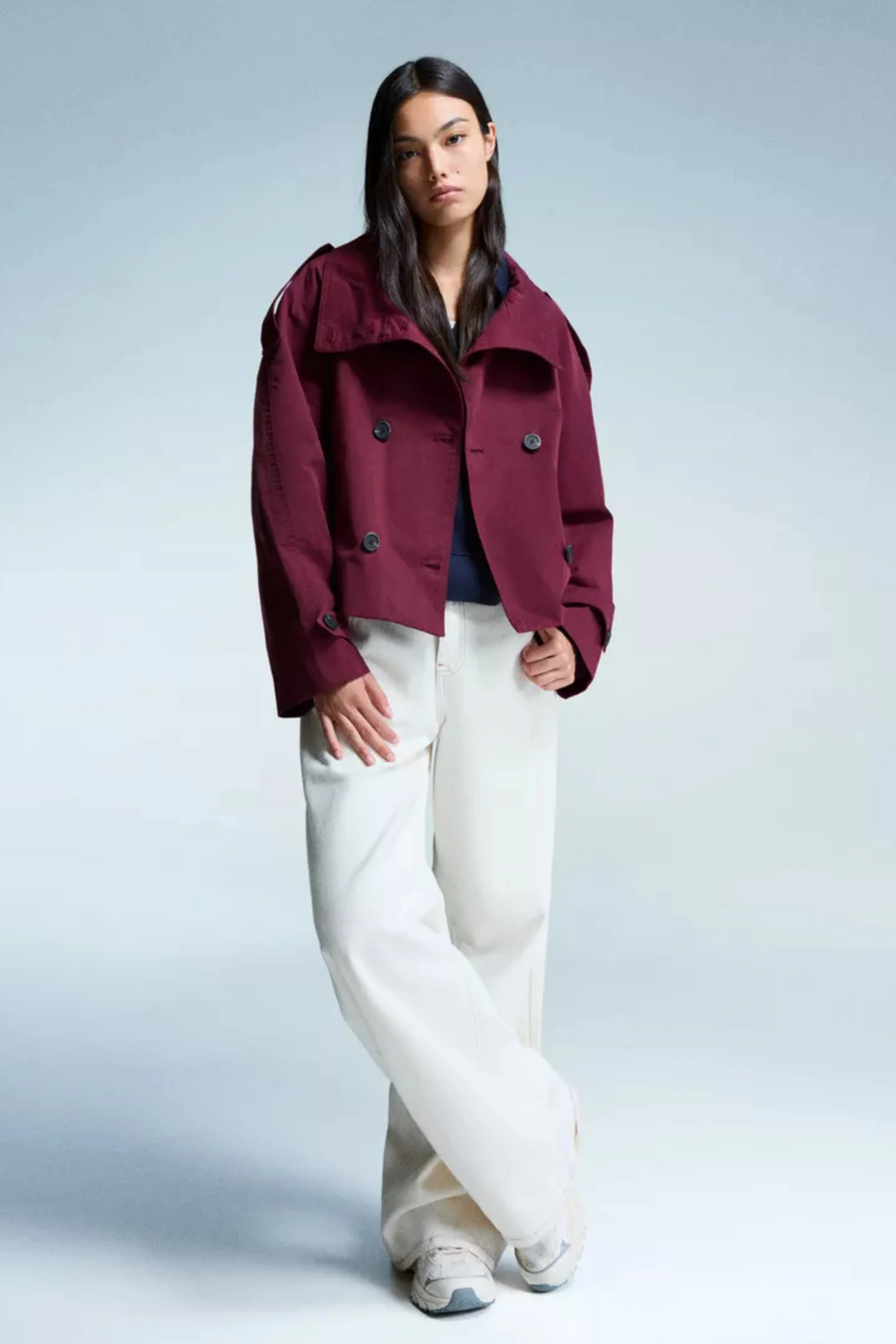 Le col montant ajoute une touche de sophistication tout en vous protégeant de la brise, tandis que les boutons contrastants et les poignets travaillés apportent une finition raffinée. Confectionné dans un tissu doux et confortable, il est parfait pour les saisons de transition, alliant style et praticité.